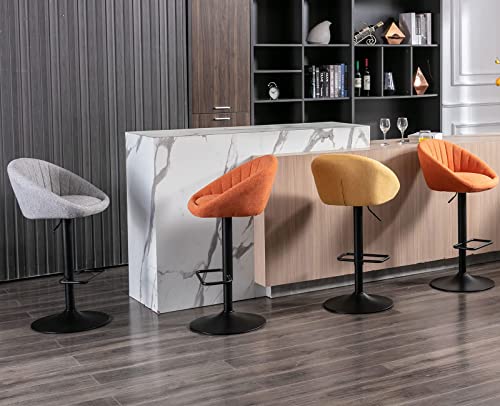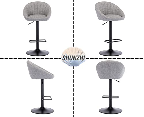 Shunzhi Swivel Beige Bar Stools Set of 2 Modern Adjustable Counter Stools Upholstered Bar Chairs with Back/Metal Base for Dining Room/Kitchen Island/Home Bar, Terrycloth