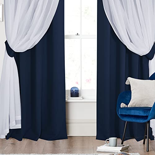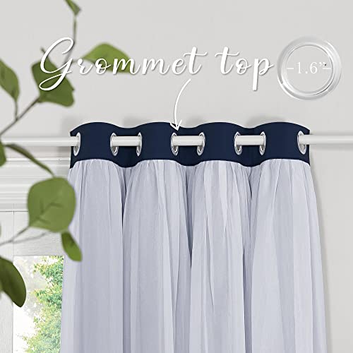 PONY DANCE White Curtains - Curtains 84 inches Long with Sheer Overlay Nursery Panels for Bedroom/Living/Dining Room, 52 W by 84 L, Pure White, 2 Pieces