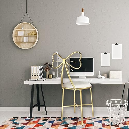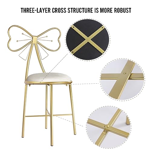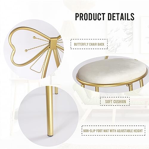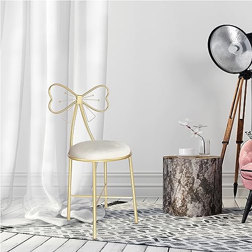 Vanity Stool Chair for Makeup,Modern Velvet Butterfly Accent Chair,Pink Cute Girls Bow Knot Backrest Chair with Golden Leg for Living Room,Bedroom,Vanity,Office,Reading Nook