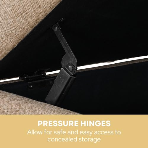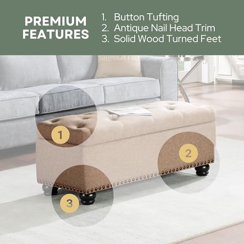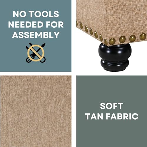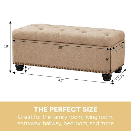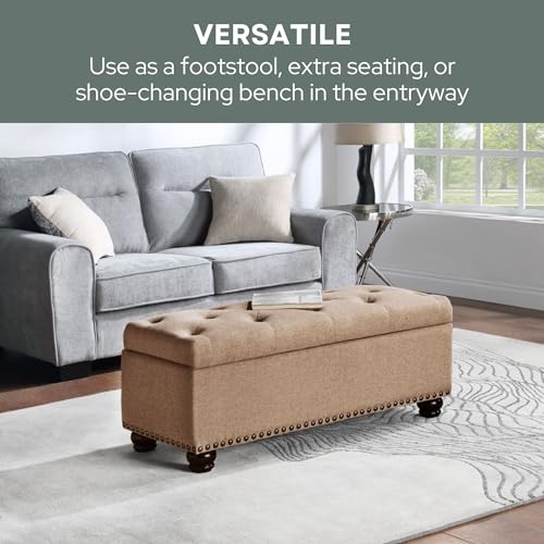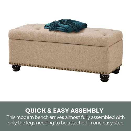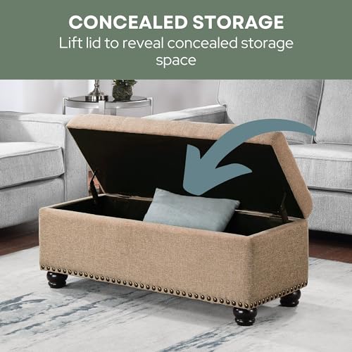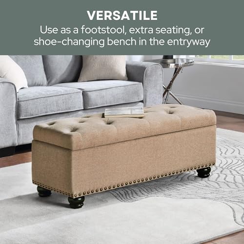 Convenience Concepts Designs4Comfort 9th Avenue Upholstered Storage Ottoman Bench 42" - Contemporary Foot Stool and Seat with Hinged Lid for Living Room, Hallway, Entryway, Tan Fabric