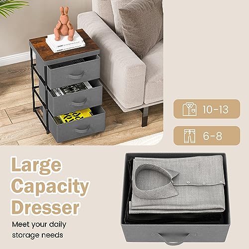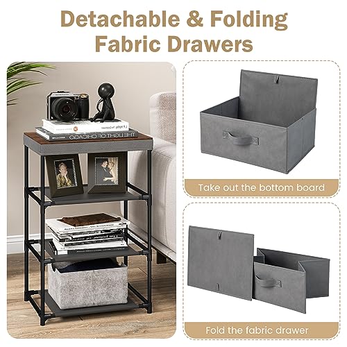 GOFLAME Fabric Dresser Set of 2 with 2 Drawers, Nightstand for Bedroom, Bedside Table with Removable Fabric Bins & Handles, Sofa Side Table, End Table for Living Room, Entryway, Black & Rustic Brown