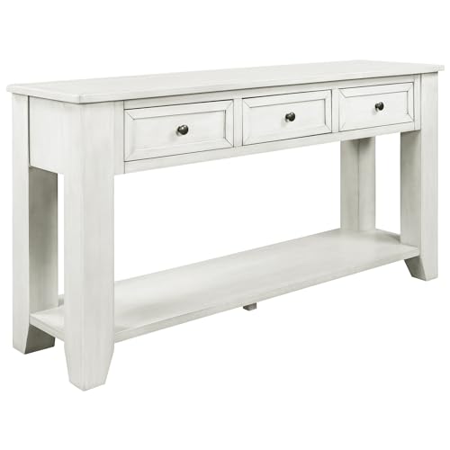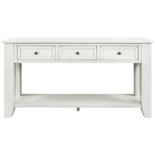 Narrow Console Table with 3 Storage Drawers and Bottom Shelf, Traditional Style Wood Slim Sofa Tables and Entryway Accent Tables for Living Room, 23.7" L x 13" W x 31.1" H Navy