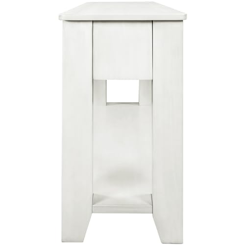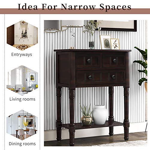 LUMISOL Short Console Table with Drawers for Entryway Wood Narrow Sofa Table Farmhouse Style with Storage Shelves for Entryway Living Room Bedroom Hallway Kitchen, Brown