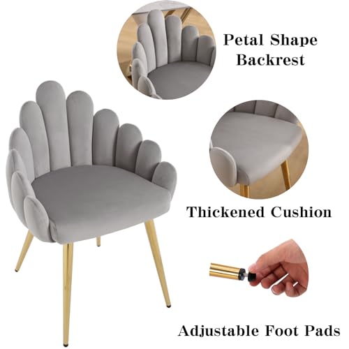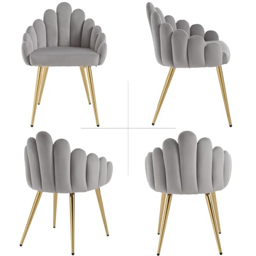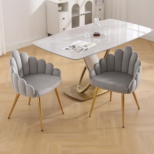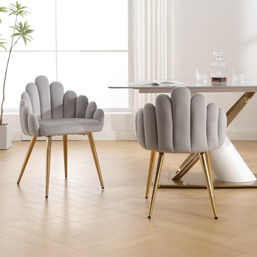 LukeAlon Sherpa Dining Chairs Set of 2, Upholstered Petal Back Accent Chairs with Metal Legs Leisure Modern Side Chairs Makeup Vanity Chairs for Living Room Home Kitchen, Black