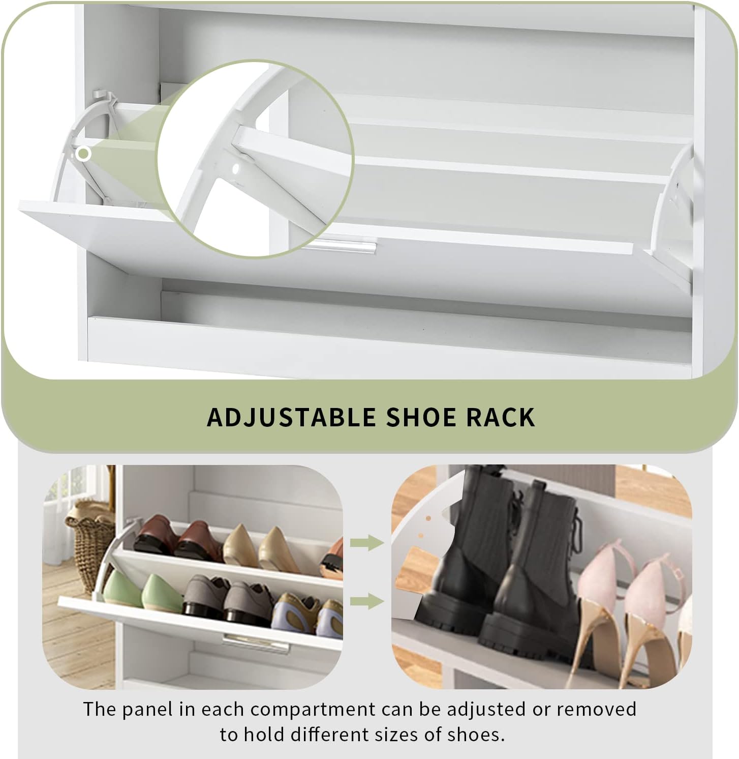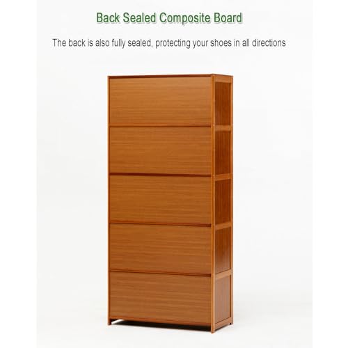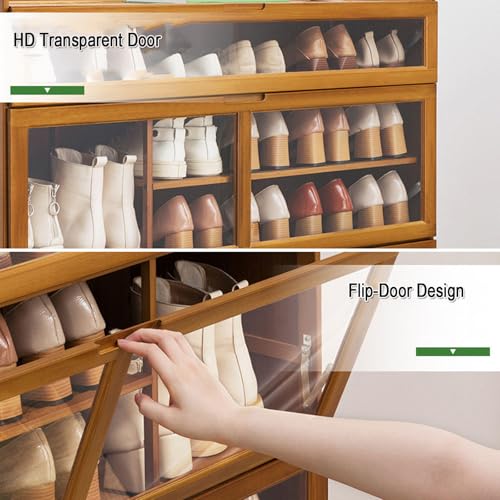 Shoe Rack Slim Shoe Storage Cabinet for Entryway, Bamboo Shoe Organizer with Flip Drawers, Free Standing Shoe Cabinet for Closet, Hallway Shoes Organizer
