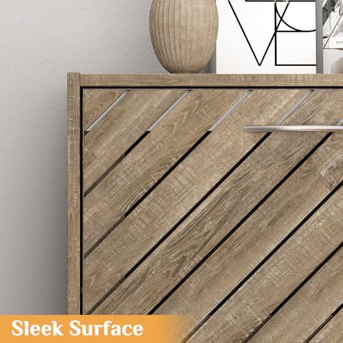 Shoe Cabinet with 3 Flip Drawers & Shutter Doors, Modern Shoe Rack Cabinet with Removable Divider, Narrow Shoe Storage Organizer for Slim Entryway, Dorm, Brown