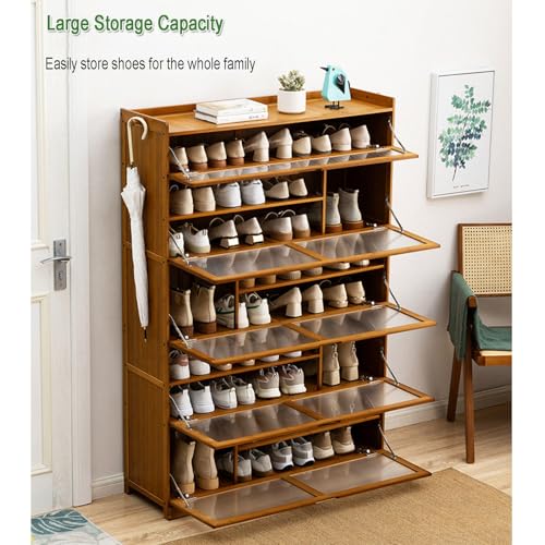 Shoe Storage Shelf Slim Shoe Storage Cabinet for Entryway, Bamboo Shoe Organizer with Flip Drawers, Free Standing Shoe Cabinet for Closet, Hallway Shoe Rack Organization Shelves