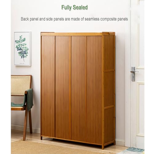 Shoe Storage Cabinet with Doors Slim Bamboo Freestanding Shoe Cabinet Portable Shoes Rack Organizer for Entryway, Hallway, Closet, Dorm Room,B-100 * 33 * 85cm