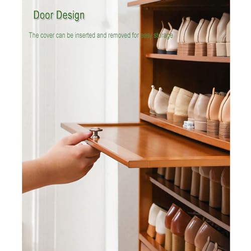 Shoe Storage Cabinet Bamboo Shoe Organizer with Flip doorFreestanding Slim Narrow Shoe Rack Cabinet Space Saving for Closet Hallway Bedroom Entryway,A-60 * 32 * 73cm