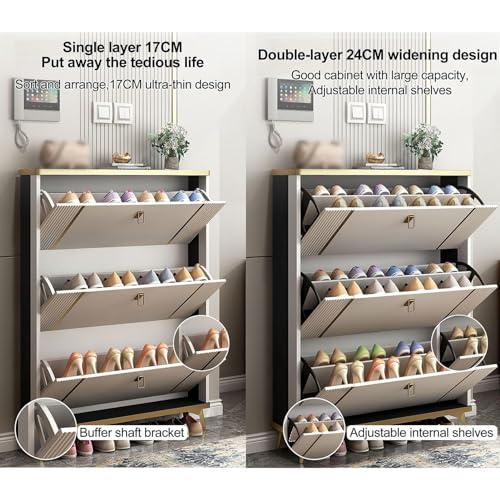 Shoe Rack Shoe Rack Shoe Cabinet with 3 Flip Drawers, Space Saving Slim Shoe Storage Cabinet, Freesanding Shoe Organizer Rack Cabinet for Entryway Hallway Bedroom Shoe Shelf Organizer