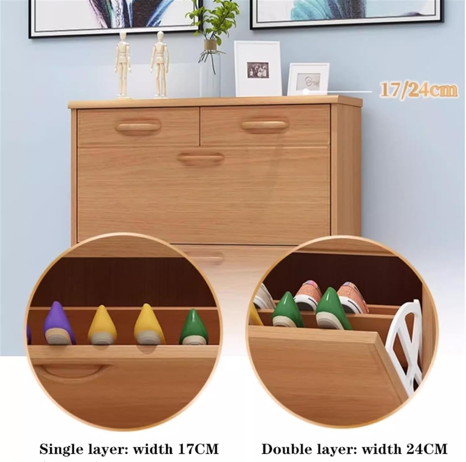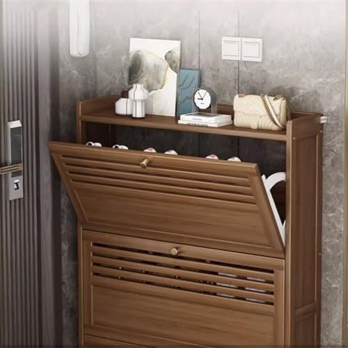 Shoe Cabinet 7.0" Slim Shoe Storage Cabinet, Flip Drawers Shoe Organizer, Freesanding Bamboo Shoe Cabinet for Entryway Hallway Bedroom Shoe Rack for Front Door Entrance (Color : 50x17x105cm)