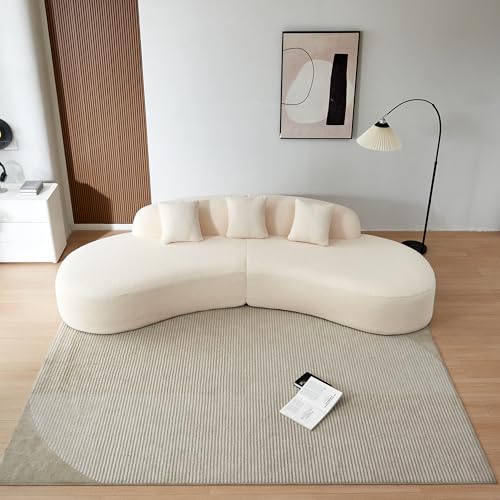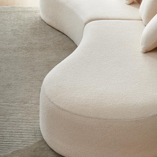 119.29" Curved Sectional Sofa Cloud Boucle Couch with Sherpa Fabric, Modern Sea Wave Sofa Couch 5 Seat Sofa Couch for Living room Office(Gray)