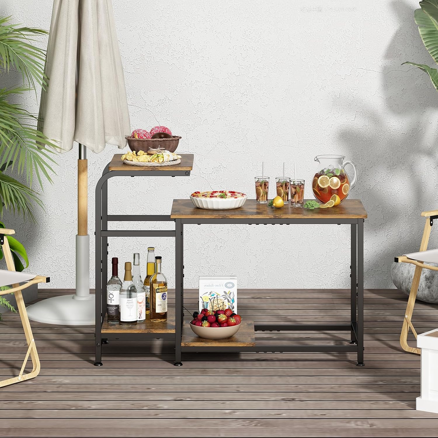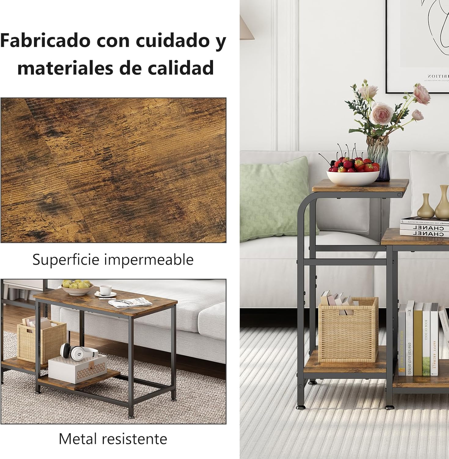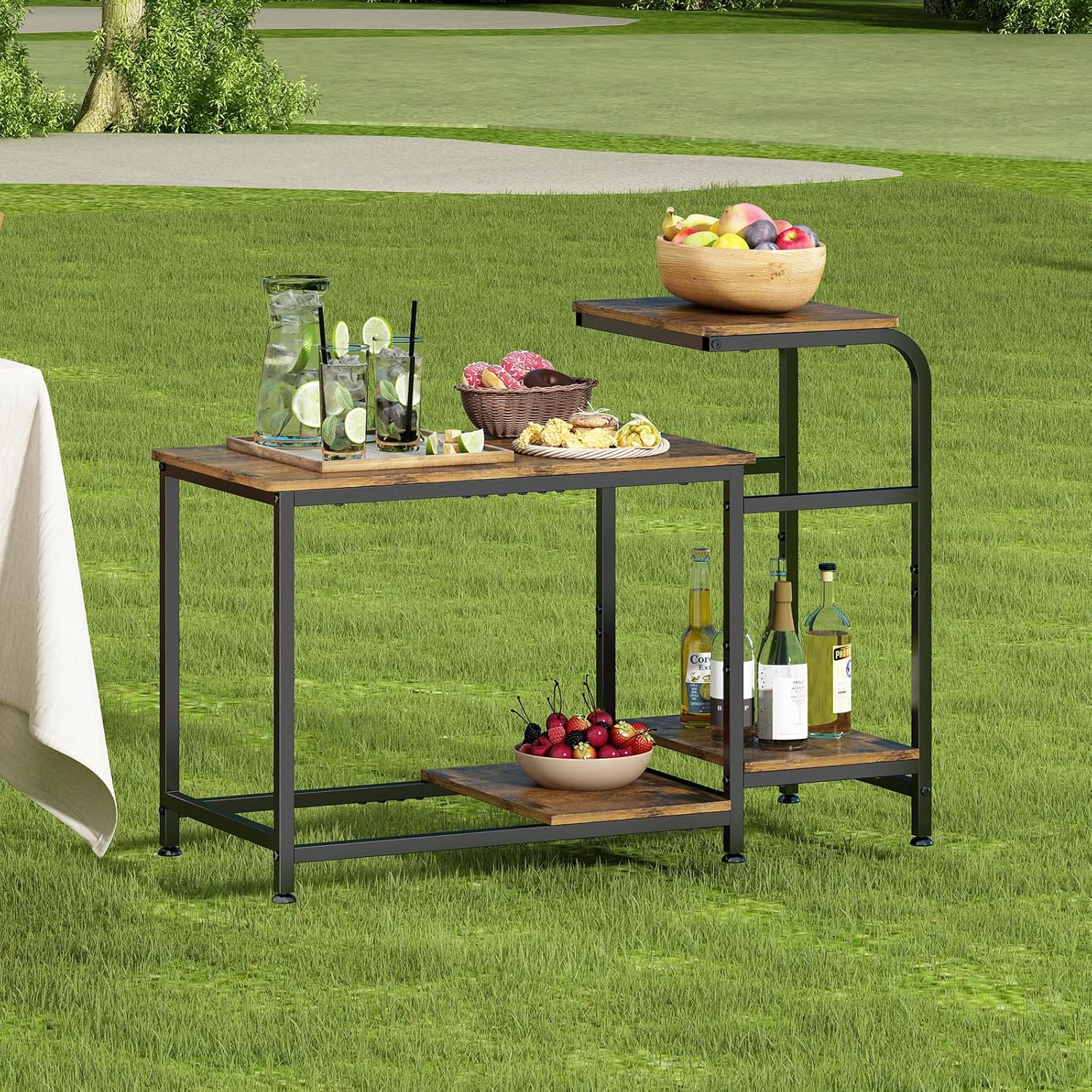 2 Tier Coffee Tables, Simple Industrial Style Center Table, Open Space, Small Outdoor Side Table for Living Room, Office, Camping Table, Easy to Assemble, Rustic Brown