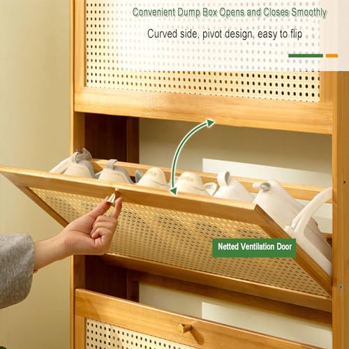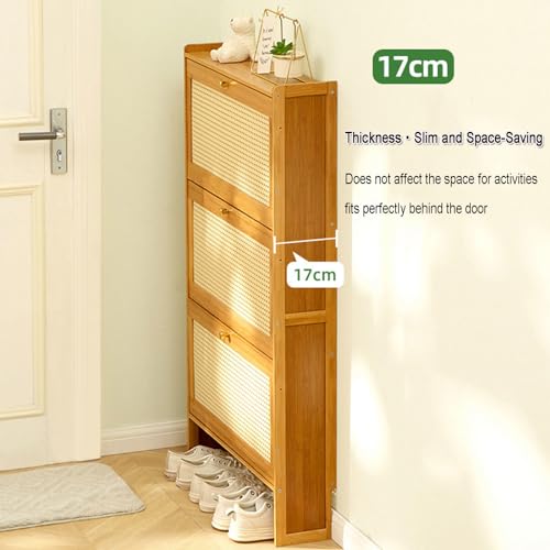 Rattan Shoe Cabinet with 3 Flip Drawers, Free Standing Shoe Racks Slim Bamboo Shoe Shelf Portable Shoe Rack Organizer for Closet Hallway Bedroom Entryway,B-70 * 17 * 120cm