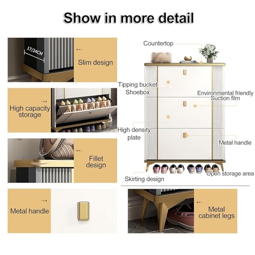 Narrow Slim Hidden Shoe Organizer with Doors 360 Multi-Functional Household Shoe Cabinet Corner Shoe Rack Freestanding Closed Shoe Storage for Hallway Entrance Bedroom Living Room.