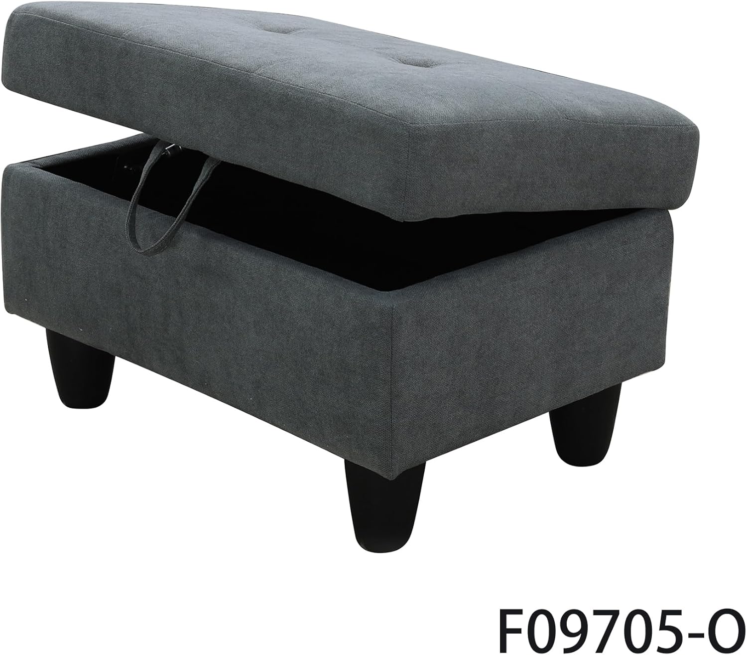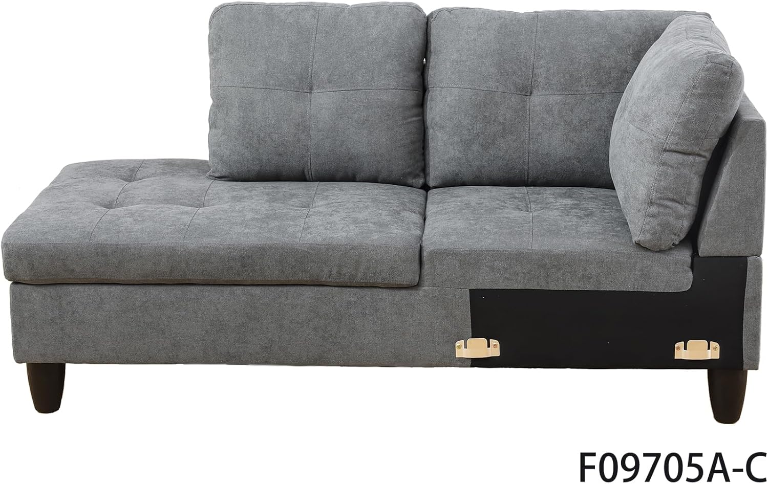 3 Piece Living Room Furniture Set with L-Shaped Sectional Sofa, Left Chaise Lounge, Storage Ottoman and 2 Throw Pillows, Curved Armrests Tufted Flannel Modular Couch for Large Space Apartment