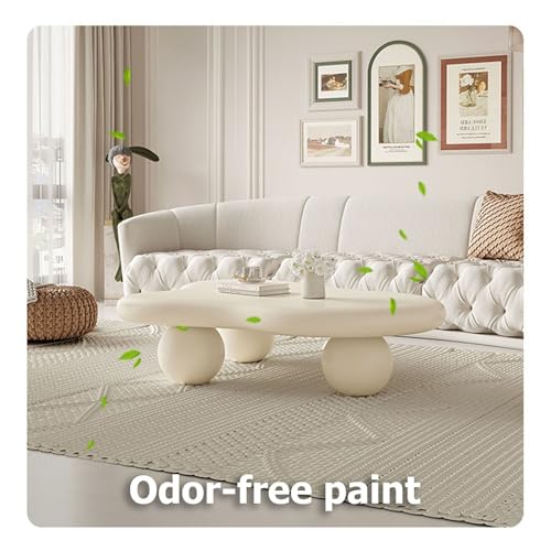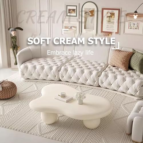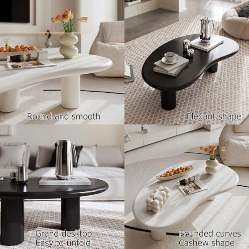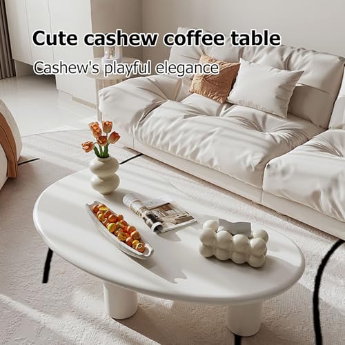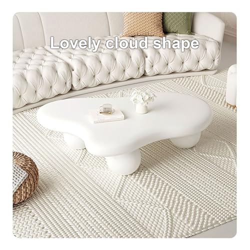 Irregular Side Table and Cloud Coffee Table, Wooden Farmhouse Coffee Table, Simple Modern Center Cocktail Table, for Living Room Reception Room Office(White,100 * 69 * 30cm)