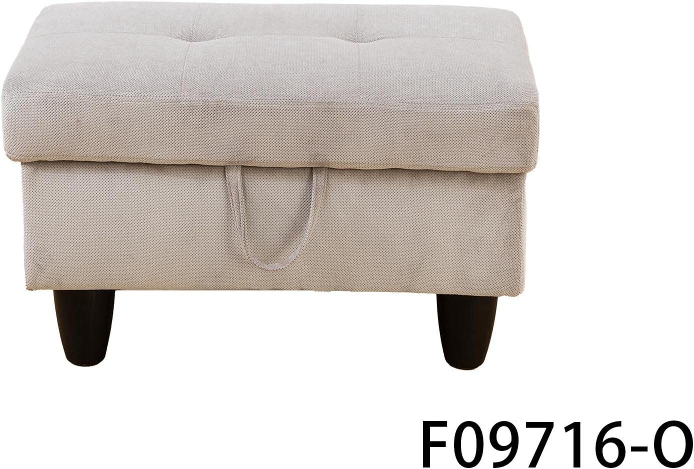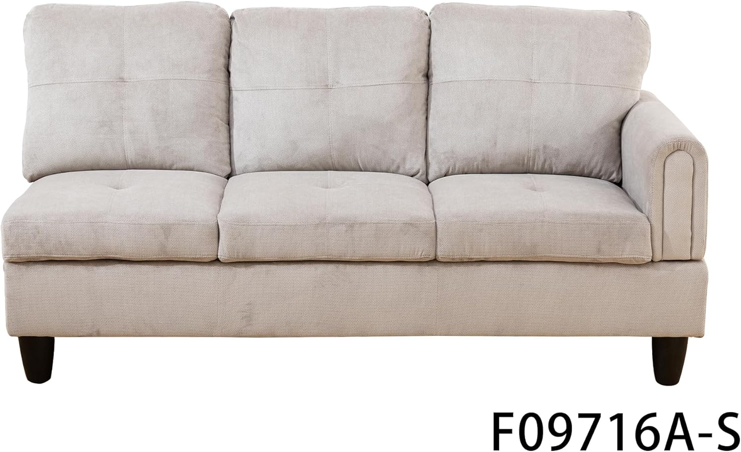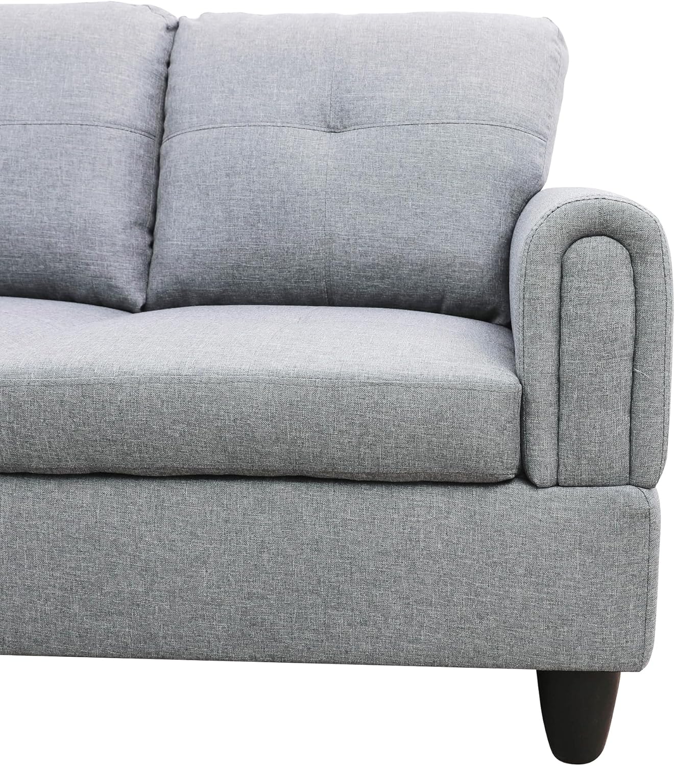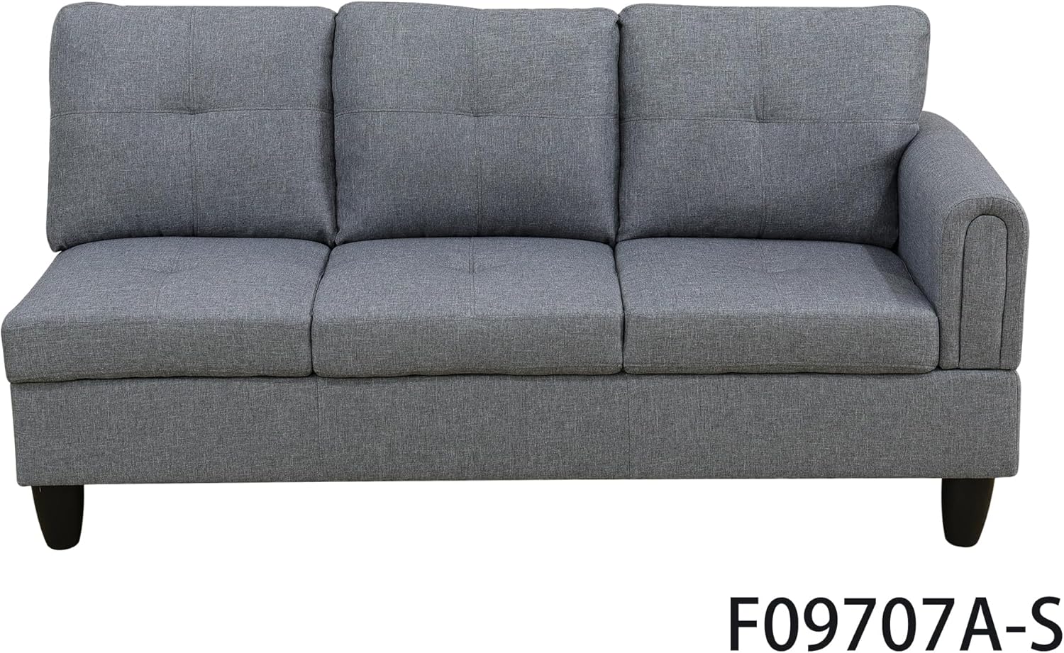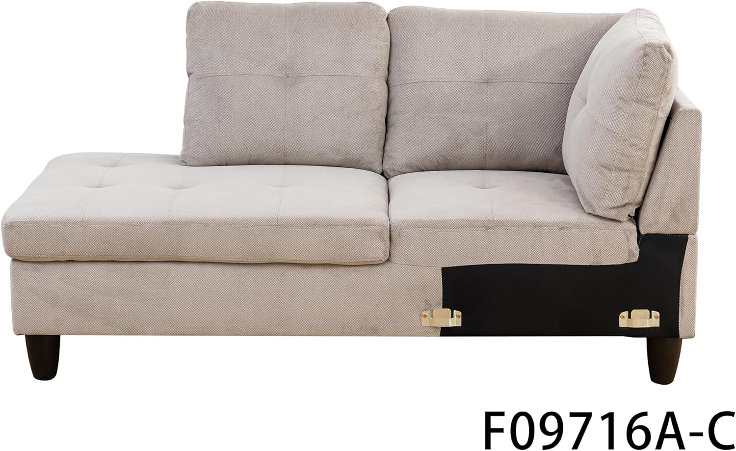3 Piece Living Room Furniture Set with L-Shaped Sectional Sofa, Left Chaise Lounge, Storage Ottoman and 2 Throw Pillows, Curved Armrests Tufted Linen Modular Couch for Large Space Apartment