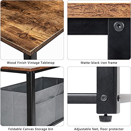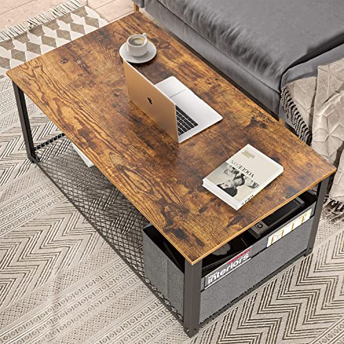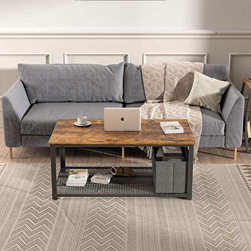 Coffee Table with Removable Storage Box, Natural Wooden Table Top and Metal Frame for Living Room, 40.8"x 22.8" (Rustic Brown)
