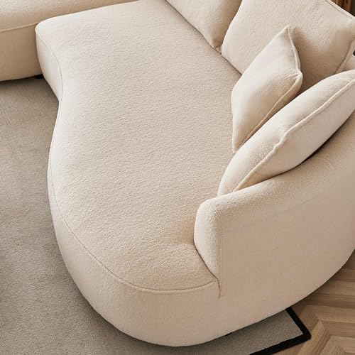 Curved Sectional Sofa Couch for Living Room L-shaped Sofa Couch with Chaise Lounge 110.2" Luxury Upholstered Sofa with 2 Pillows for Home Office Beige