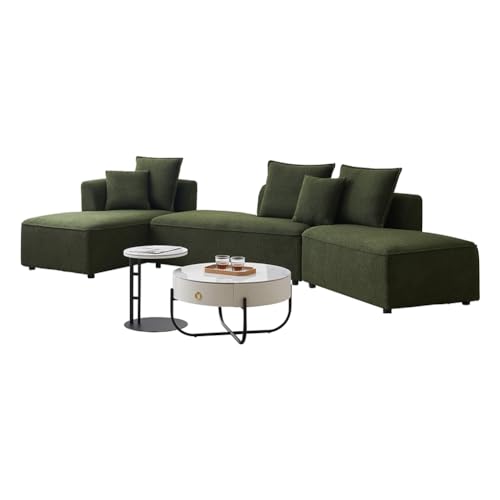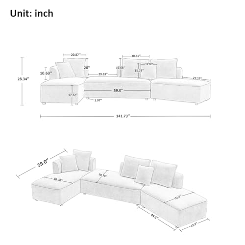 L Shape Sectional Couch, Modular Sectional Couch with 5 Pillows, Chaise Lounge, Upholstered Breathable Curved Sectional Sofa for Living Room