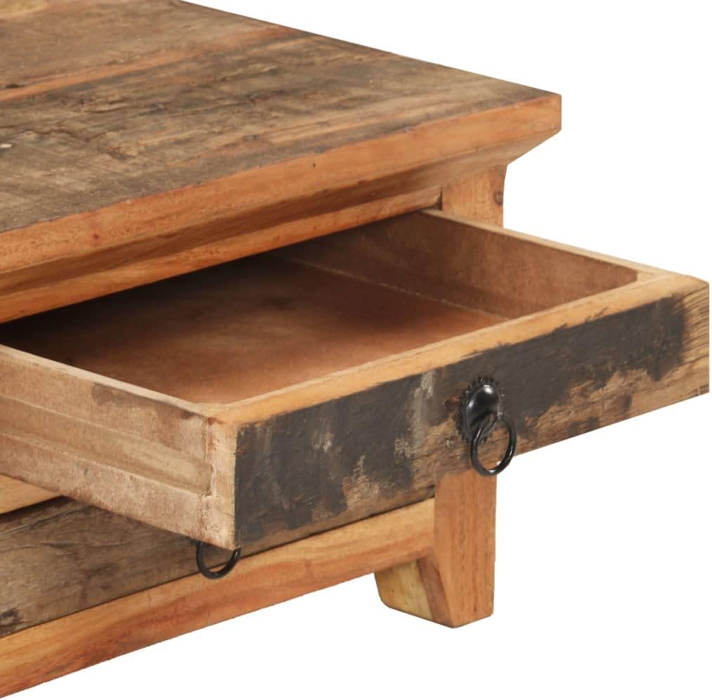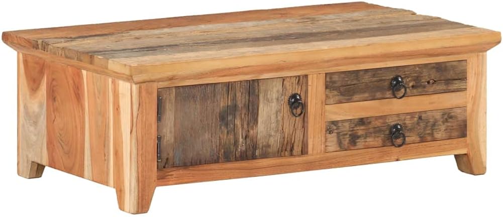 vidaXL Solid Reclaimed Wood Coffee Table with Storage, Vintage Rustic Rectangular Accent Table, Strong Acacia Wood Frame, No Assembly Required, 35.4"x19.7"x12.2"