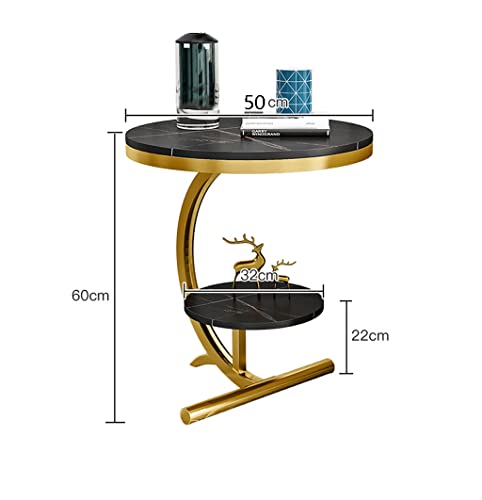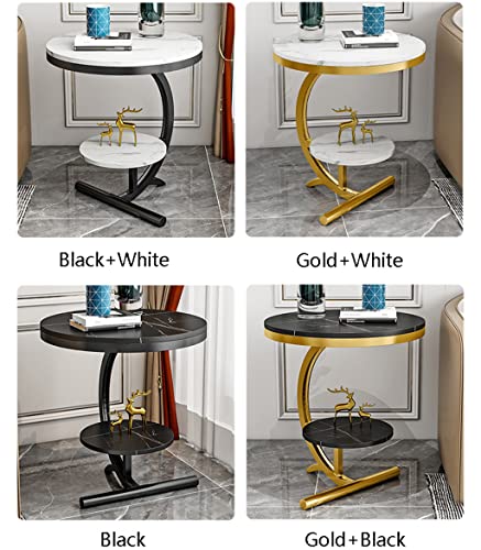 Luxury Marble Sofa Side Table 2 Tier Round Corner Table for Living Room Hotel Sofa End Bedside Table (Gold+Black)