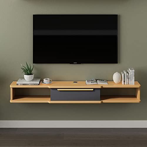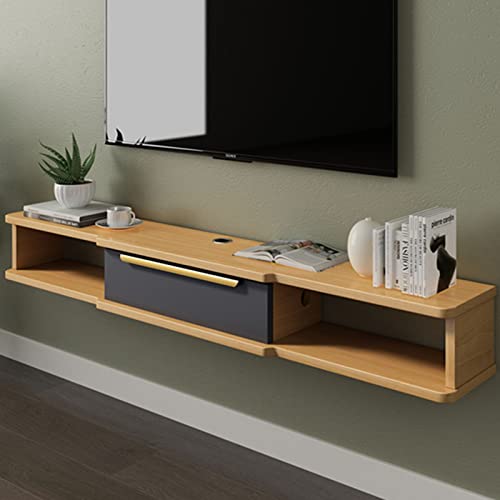 Floating TV Stand Cabinet Wall Mounted Tv Unit Multimedia Storage Shelf,Floating Tv Stand,Solid Wood Living Room Entertainment Center Console,Set-Top Box Shelf