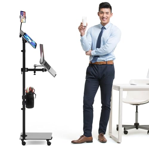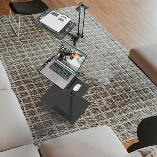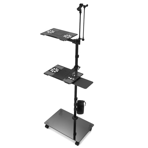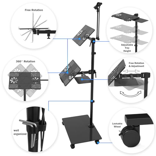 Swivel Tilt Laptop Desk, Height Adjustable Portable and Rolling Desk with Both Foot Pads and Wheels, Mobile Computer Cart for Home, Office,Workshops