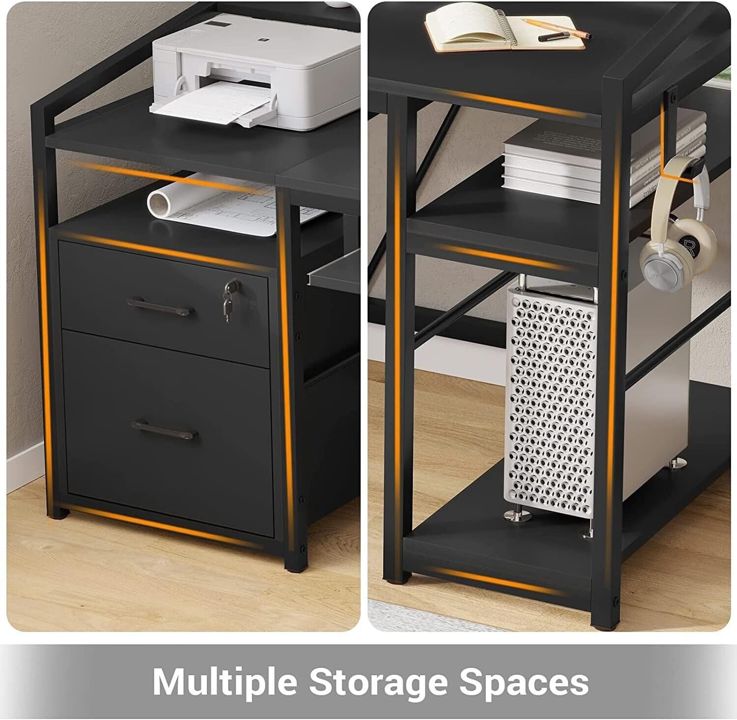 Saranya 18 Shop New Modern Black Computer Desk Office Desk with File Drawers & Monitor Shelf Writing Shelf Shelves Home Office Study and Workstation Living Room 63'L x 21.7" W x 35.4" H of Set