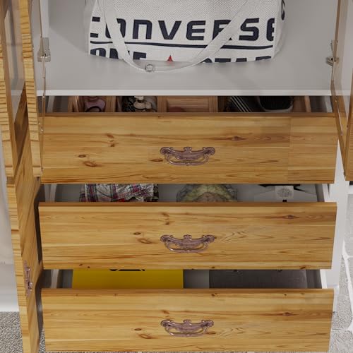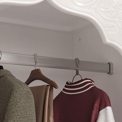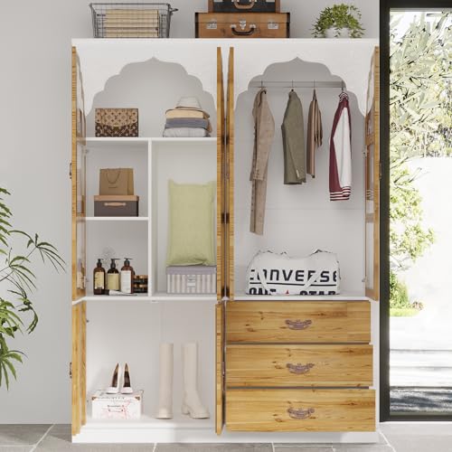 Classic Armoire Wardrobe with 4 Wood Doors, 4 Closed Shelves, 1 Hanging Area, 1 Shoes Storage Space, 3 Drawers for Bedroom, White (57.5”W x 20.3”D x 75.7”H)