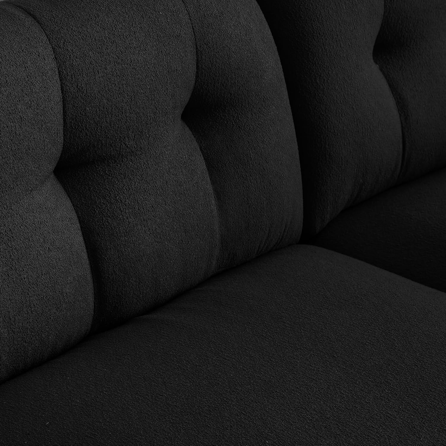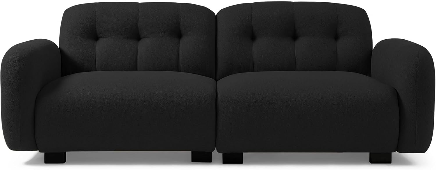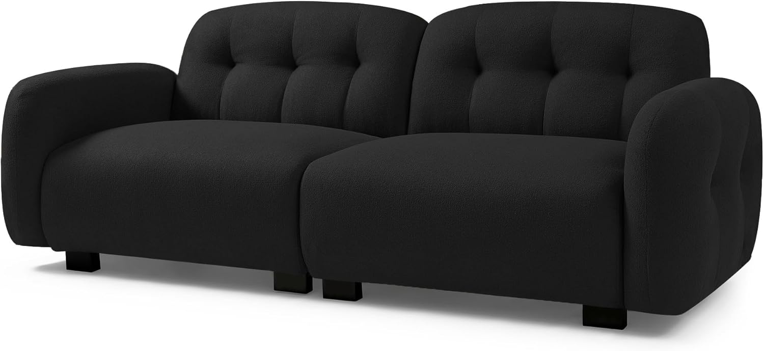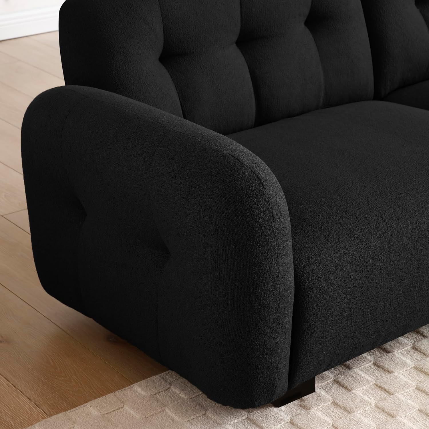 Modern 3-Seater Teddy Sofa Sectional with Wooden Legs, Upholstered Deep Seat Love Seat Sofa for Living Room, Bedroom, Apartment, Office, Black (81.48")