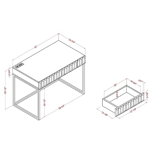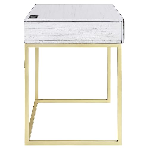 24/7 Shop at Home Bellevue Modern Metal 1 Drawer Writing Desk with USB Port, Power Outlet for Workstation, Home Office, Study Room, Antique White and Gold
