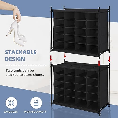 STORAGE MANIAC Stackable Shoe Cubby Organizer, Free Standing Shoe Cube Rack for Entryway, Bedroom, Apartment, Closet, 20-Cube Black