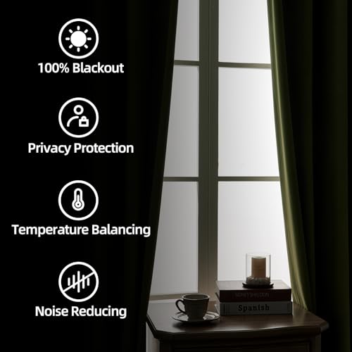 Joydeco Black 100% Blackout Curtains 96 Inches Long 2 Panels Set, Black Out Curtain for Bedroom Living Room, Luxury Heavy Duty Thermal Insulated Velvet Curtains Rod Pocket Back Tab, 52W x 96L