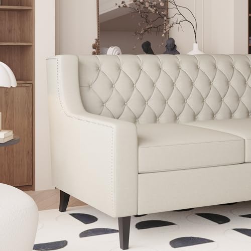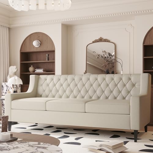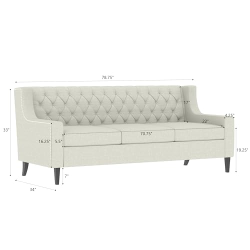 78.75'' Chesterfield Sofa - Three Seater Couch with Buttons Tufted Backrest and Comfy Cushions, Minimalist Couch with Wooden Frame and Birch Legs, 3 Seater Sofa for Living Room (Grey)