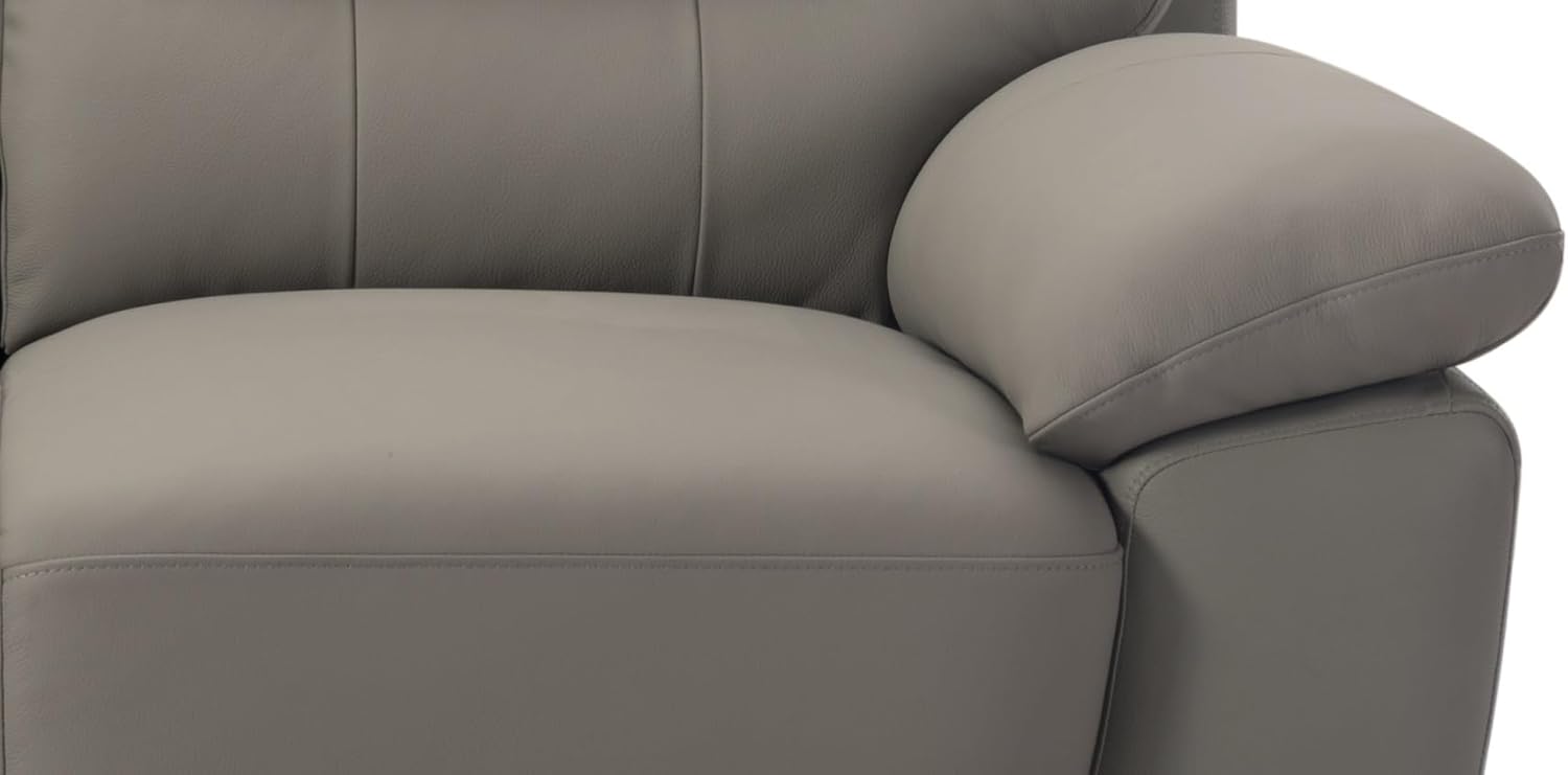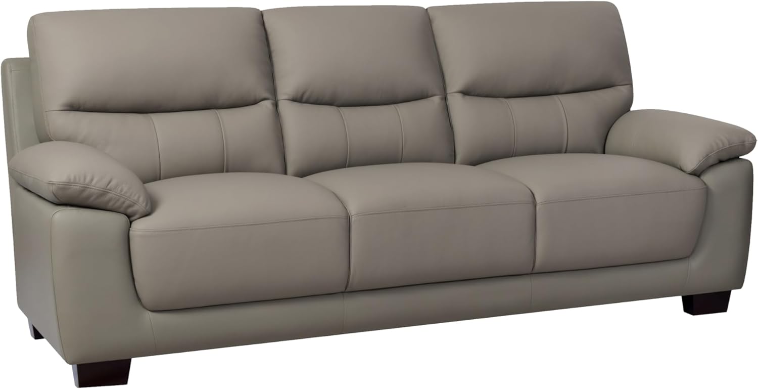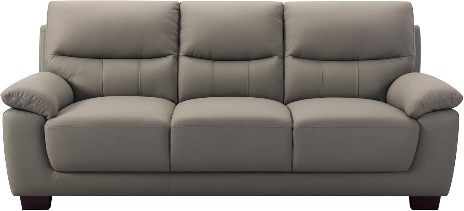 Mid-Century Modern 3-Seater Renzo Top Grain Leather Match Sofa, Firm Seating Sofa Couch with Removable Wooden Legs in Grey Color