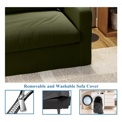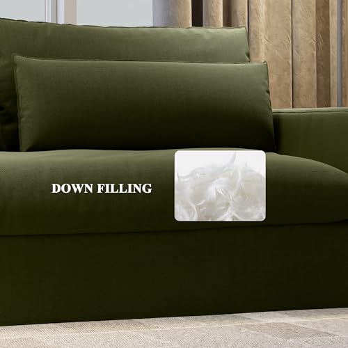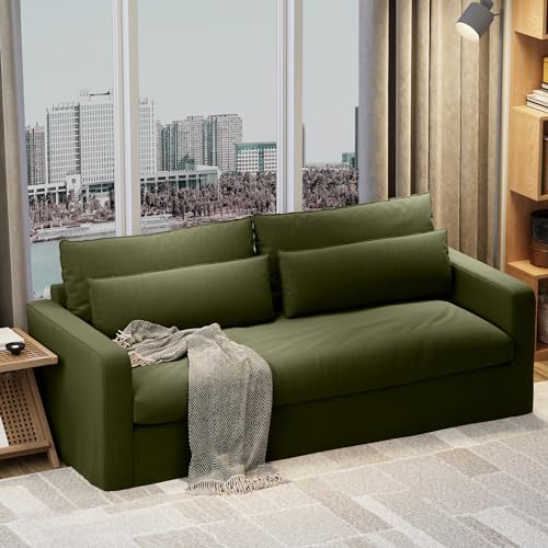 80 Inch Down Sofa Couches for Living Room Comfy Large 3 Seater Couch with Lumbar Pillows and Wooden Legs Cloud Sofa Upholstered Furniture for Home Office Bedroom Apartment Lounge