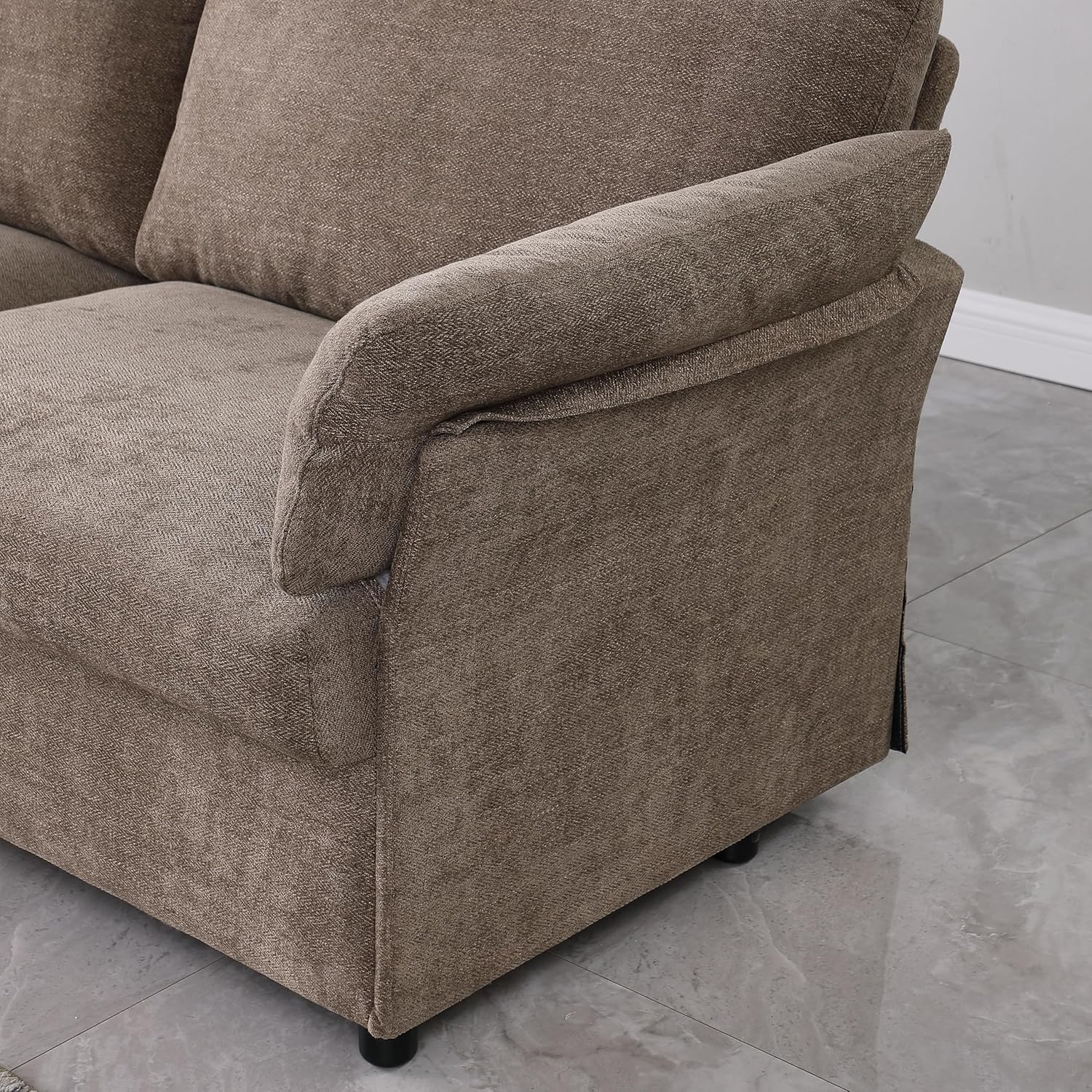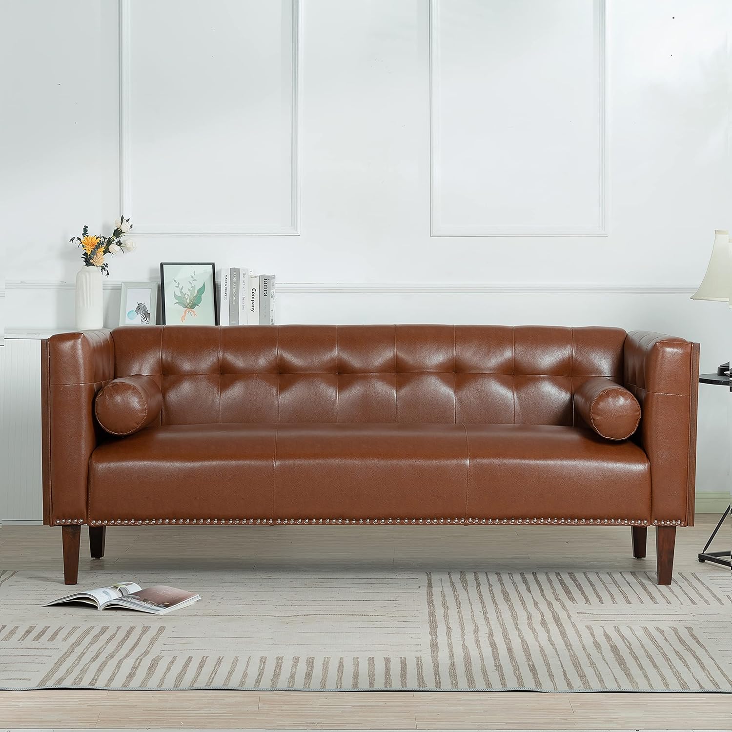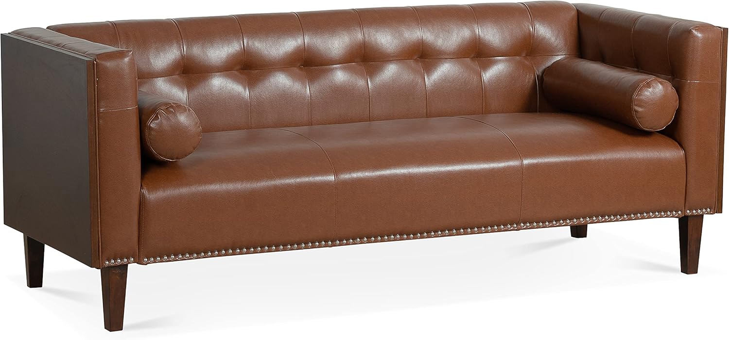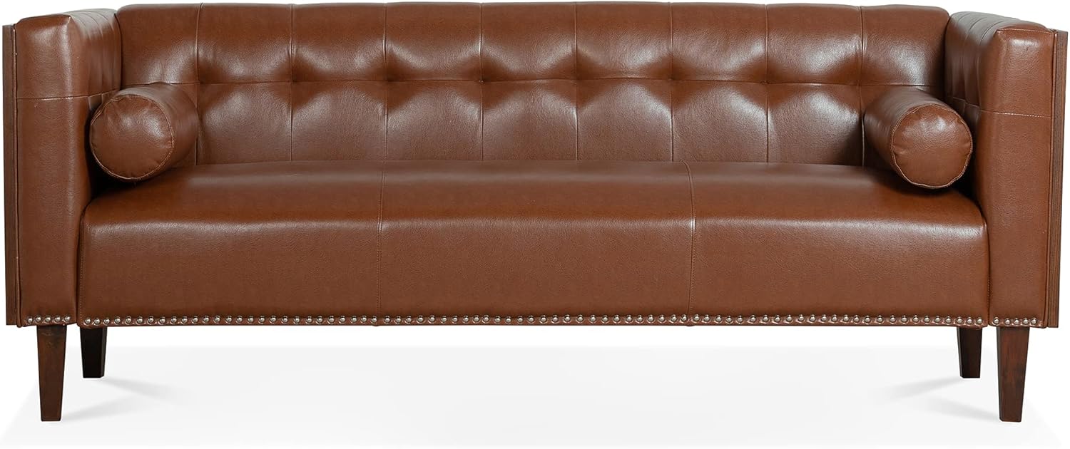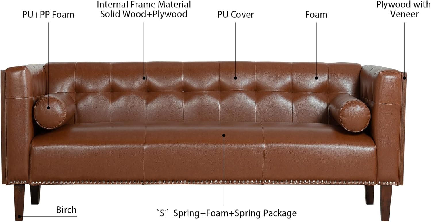 Furniture Comfy Couch Wooden Decorated Arm 3 Seater Sofa - Premium Pu Cover Sofa with Birch Legs - Comfort and Style Combined Sofas para Sala, Dark Brown, YJP3W68042992SF