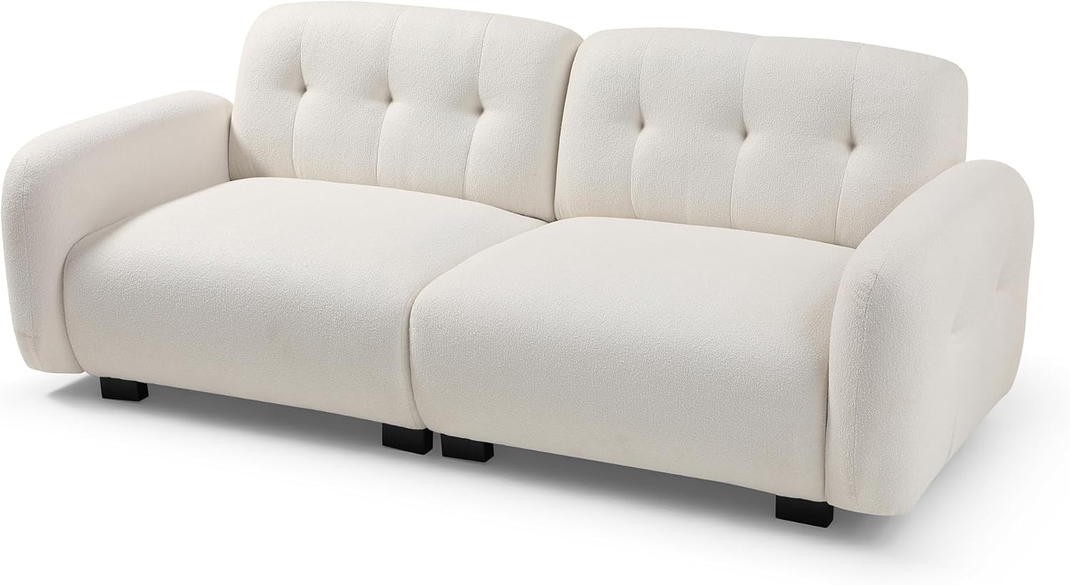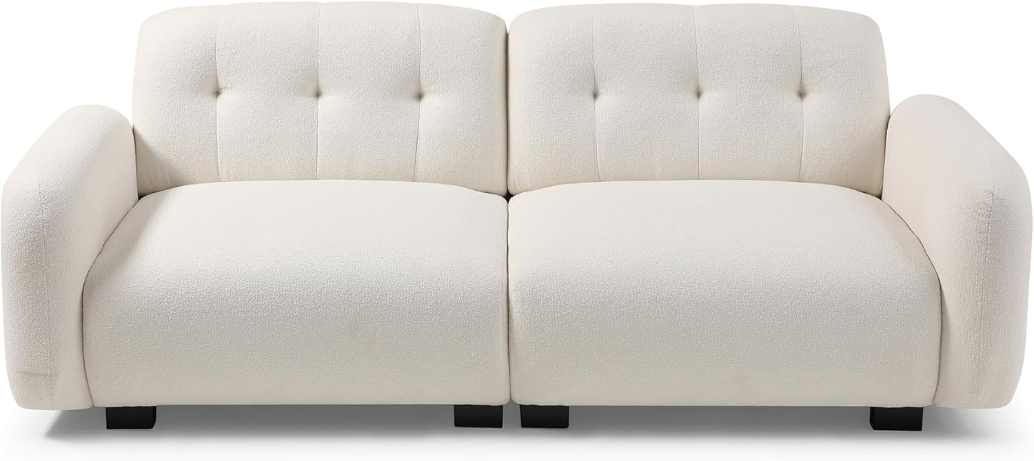 Modern 3-Seater Teddy Sofa Sectional with Wooden Legs, Upholstered Deep Seat Love Seat Sofa for Living Room, Bedroom, Apartment, Office, Beige (81.48")