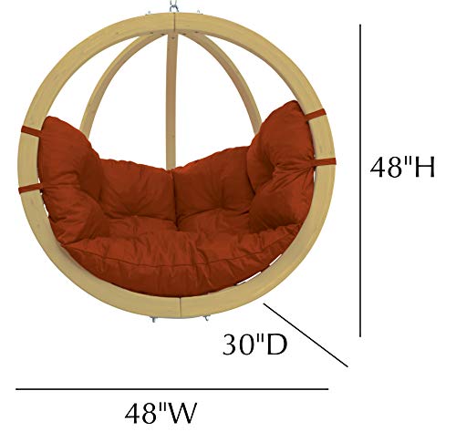 BYER OF MAINE Globo Hanging Chair - Modern Outdoor Furniture Seats 1 - Layered Spruce Wood & Agora Outdoor Cushion for Comfy Hanging Pod Chair - 48" L X 30" D X 48" H - Holds 260lbs - Terra Cotta