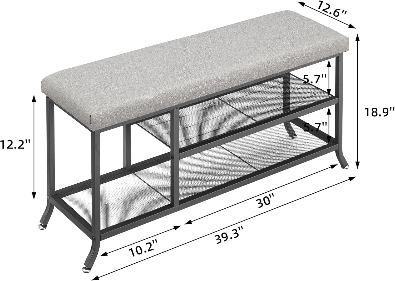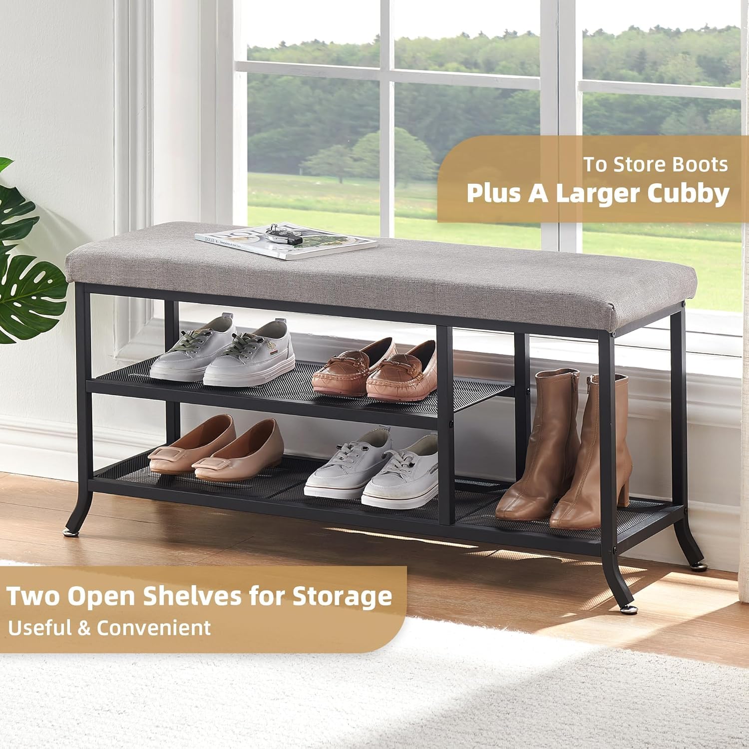 IDEALHOUSE Shoe Bench, 2-Tier Rack for Entryway with Foam Padded Seat, Adjustable Shelf, Metal Frame, Shoe Storage Bench for Hallway, Living Room, Bedroom, Easy to Install, Classic Black