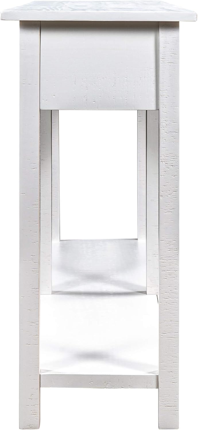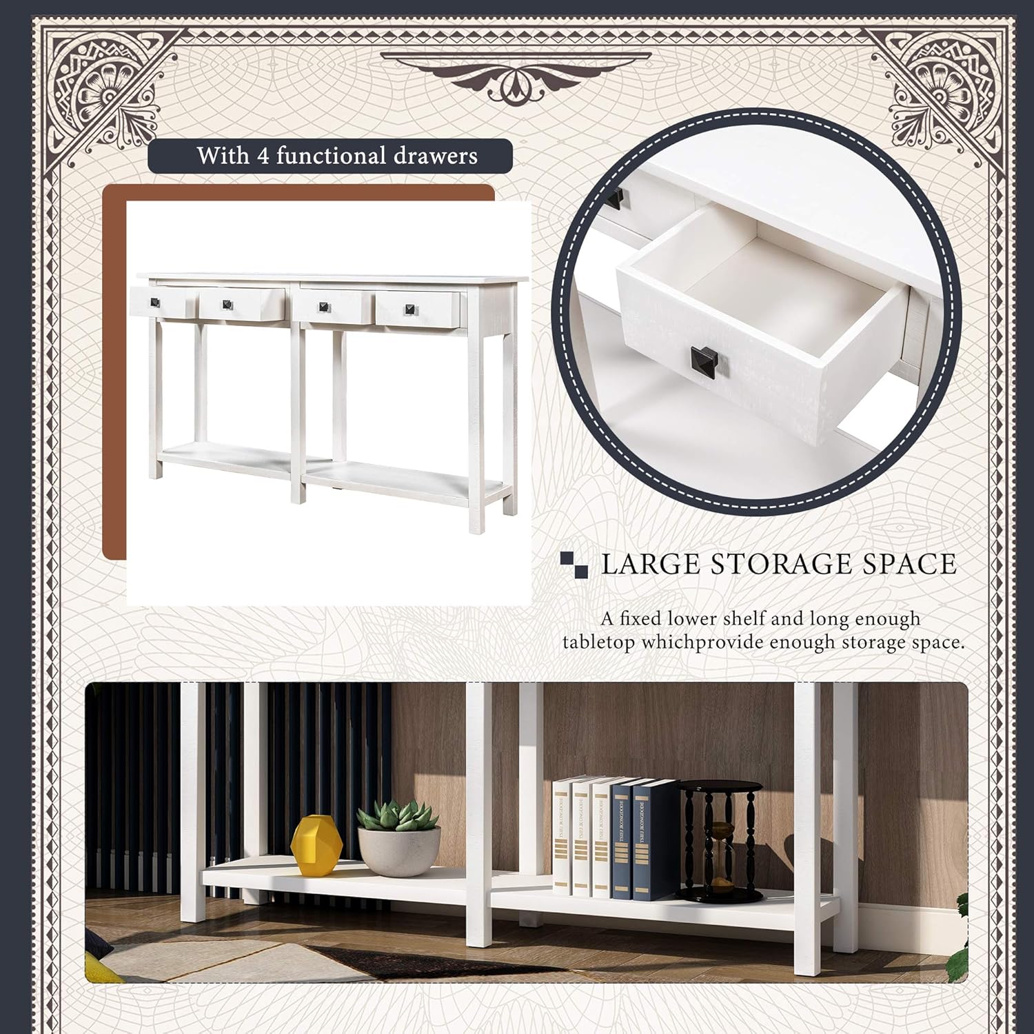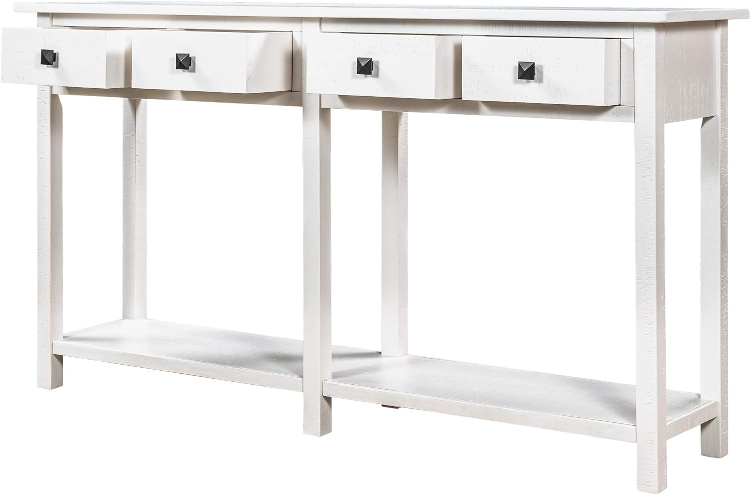 YUNLife&Home Rustic Brushed Texture Console Table, Entryway&Table with 4 Drawer and Bottom Shelf for Living Room, Entryway and Kitchen, 59", Ivory