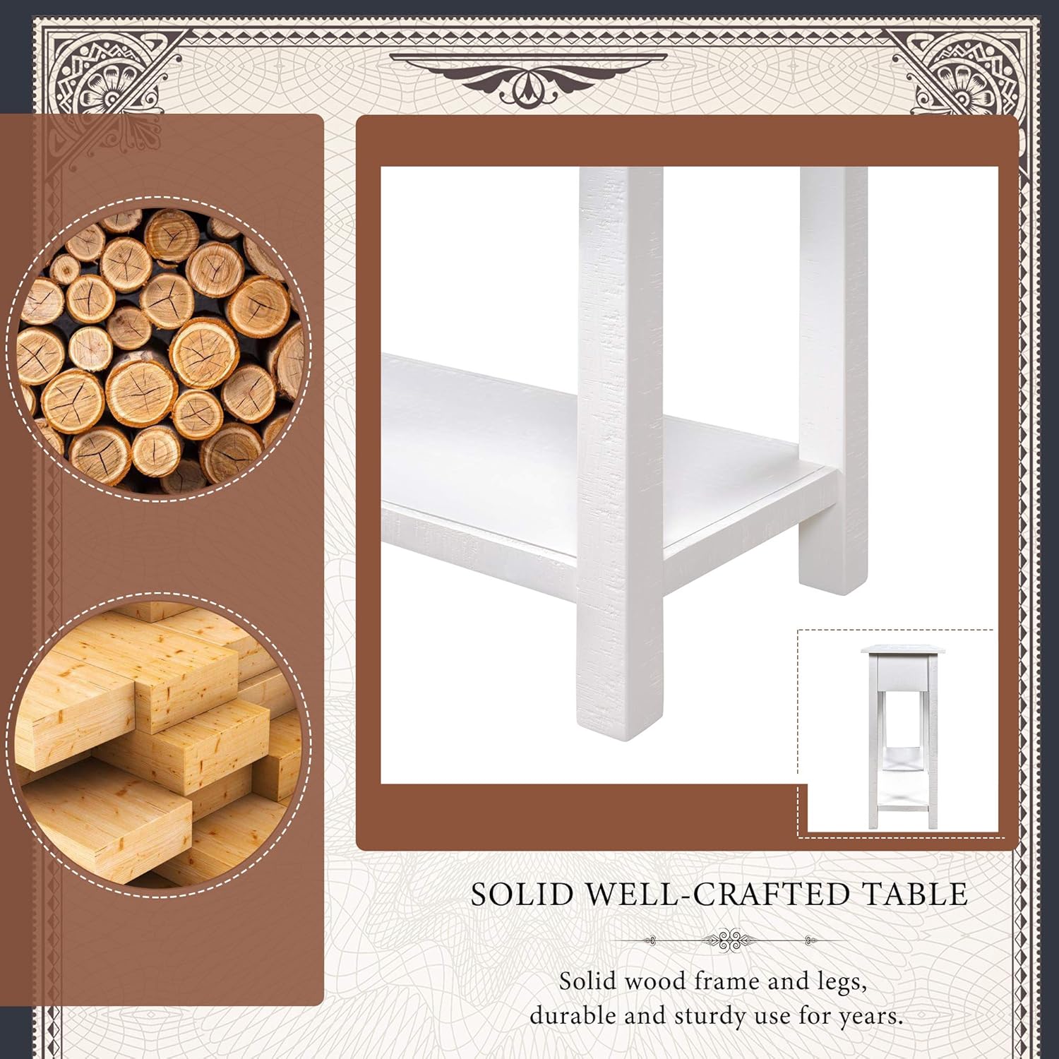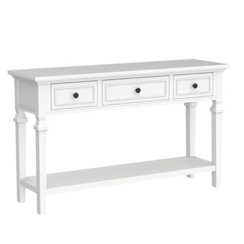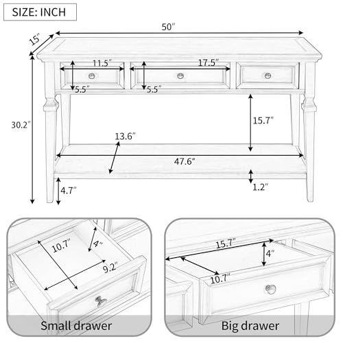 P PURLOVE Retro Console Table with Drawer,Farmhouse Entryway Table,Solid Wood Sofa Table for Entryway Hallway