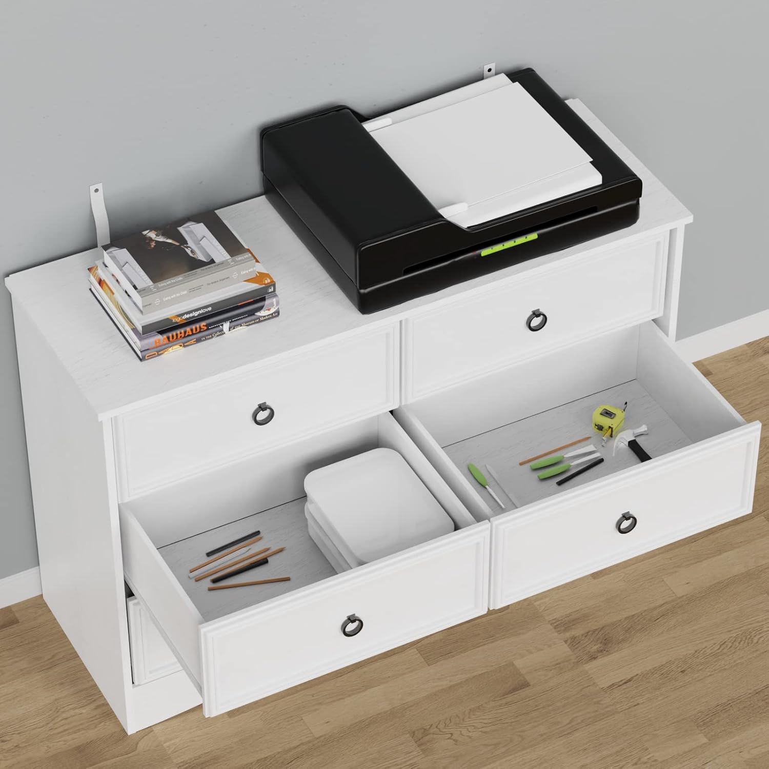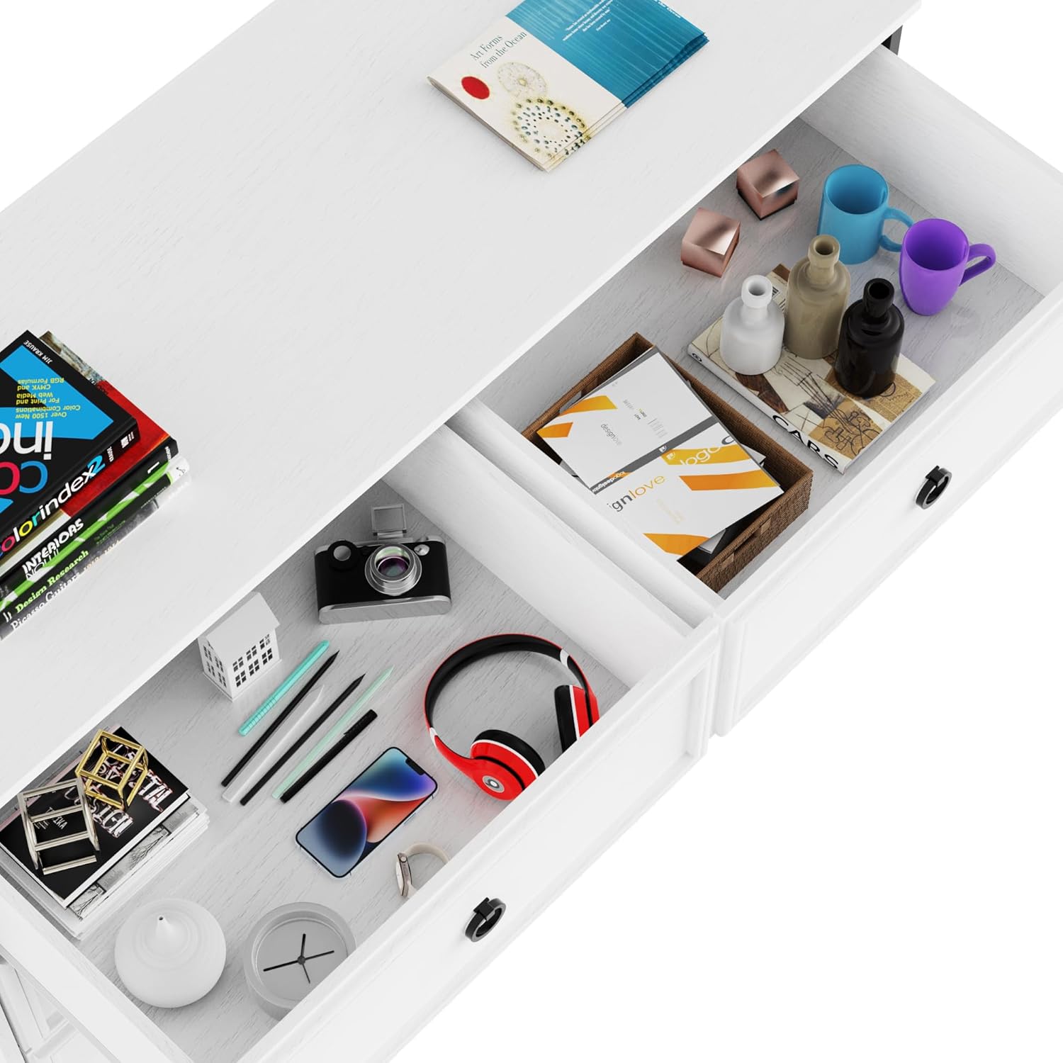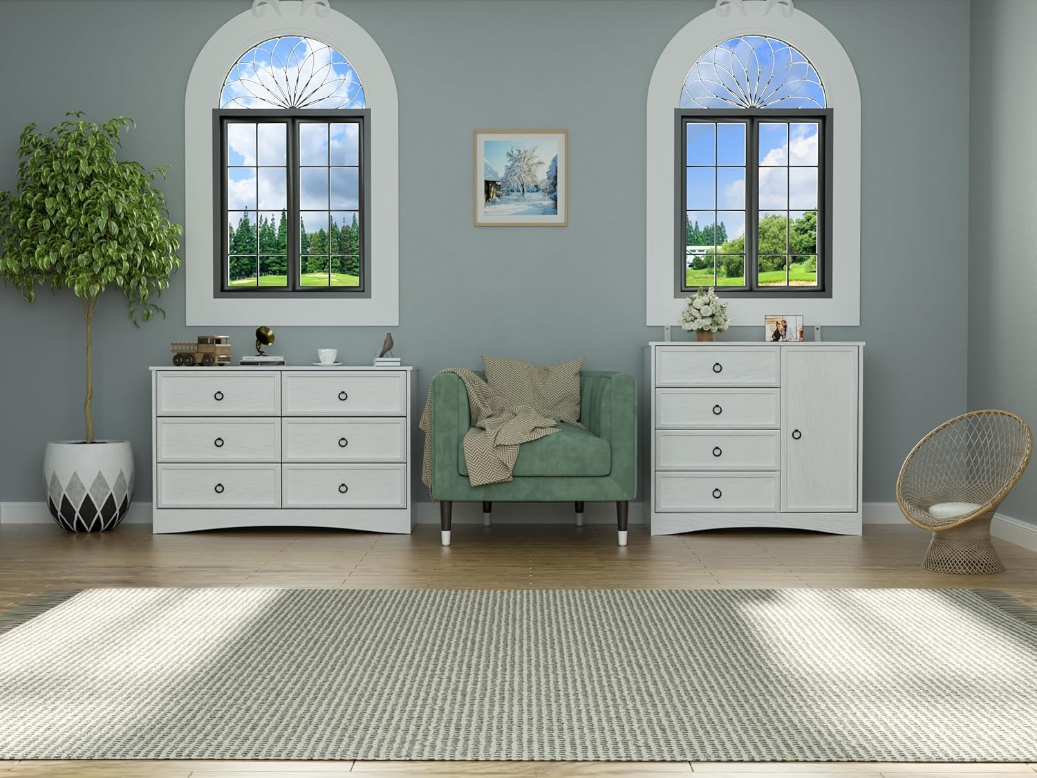 Modern 6 Drawer Dresser, Dressers for Bedroom, Large Chest of Drawers Closet Organizers and Storage Clothes - Easy Pull Handle, Textured Borders Living Room, Hallway, White