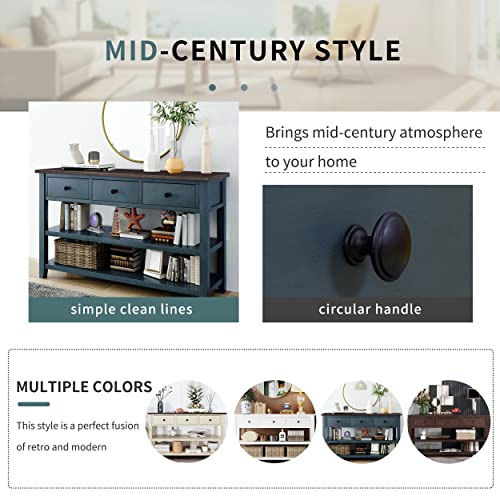 Retro Design Console Table with Two Open Shelves and 3 Drawers,Sofa Table with Pine Solid Wood Frame and Legs for Living Room,Corridor,Office,Entryway,Hallway,Foyer,Easy Assembly (Beige-05)