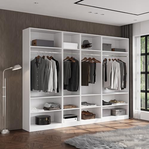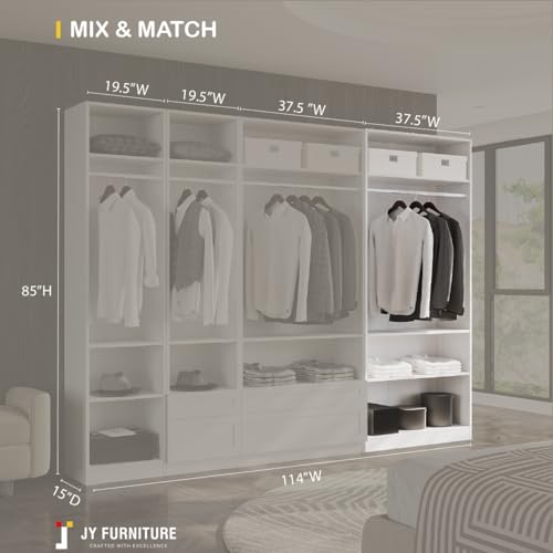 JY Furniture Armoire Wardrobe Closet, Particle Wood with Adjustable Shelves, Hanging Rod for Bedroom, Dressing Room, White (31.5" W x 85" H x 15" D)
