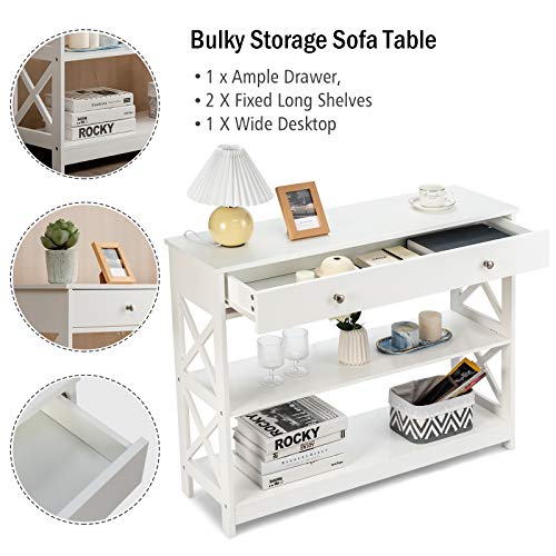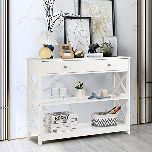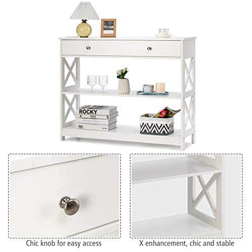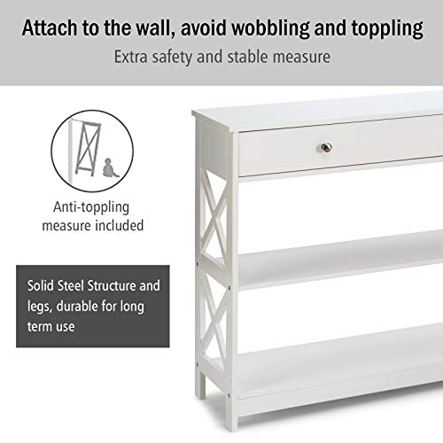 Large Drawers & 2 Storage Shelves, Modern Entryway w/Spacious Desktop, Narrow Sofa Bedroom Living Room Hallway Office 3-Tier Console Table, Black