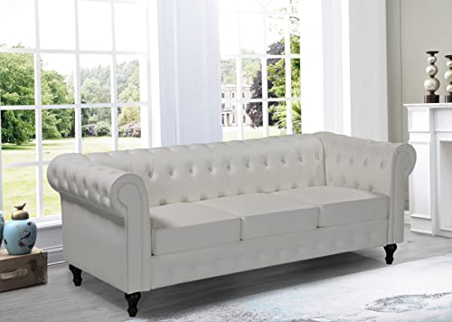 Tidyard 3-Seater Chesterfield Sofa Artificial Leather Upholstery Sofa Couch with Curved Armrest Wooden Frame for Living Room, Home, Office Furniture 78.9 x 30 x 27.6 Inches (W x D x H)