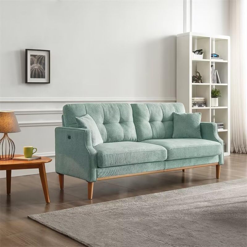 70" Accent Sofa, 3 Seater Couch with 2 Pillows, USB Charge Port and Solid Wood Frame and Legs, Waterproof Fabric Loveseats with Thickness Seat and Back Cushion for Small Aparment (Light Gray)